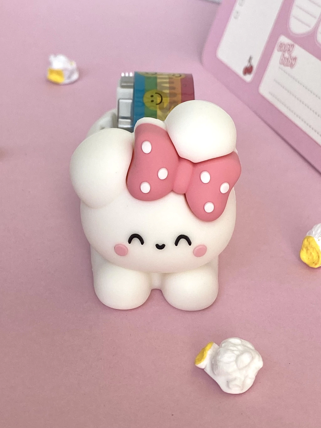 Principais Características: * Design adorável: Suporte em formato de coelhinhos fofinhos, perfeito para quem ama papelaria com estilo kawaii. * Praticidade: Mantém sua fita adesiva sempre organizada e à mão, facilitando o uso. * Material resistente: Feito com plástico durável, garantindo longa vida útil. * Compacto e leve: Ideal para usar em casa, no escritório ou levar para a escola. * Presente perfeito: Uma opção encantadora para presentear amigos que adoram itens fofos e funcionais.
